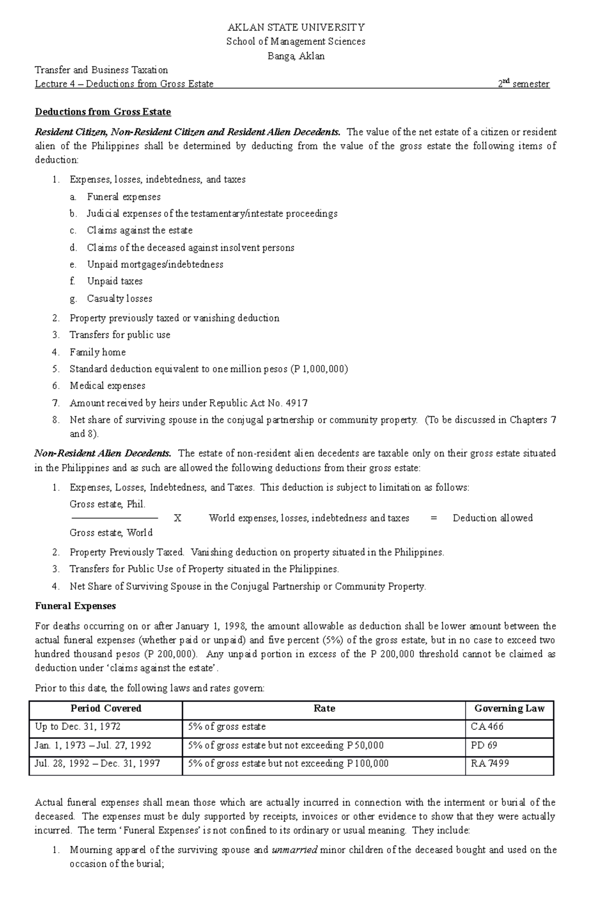 Tax 2 4 Lecture Notes 1 Aklan State University School Of Management Sciences Banga Aklan Studocu
